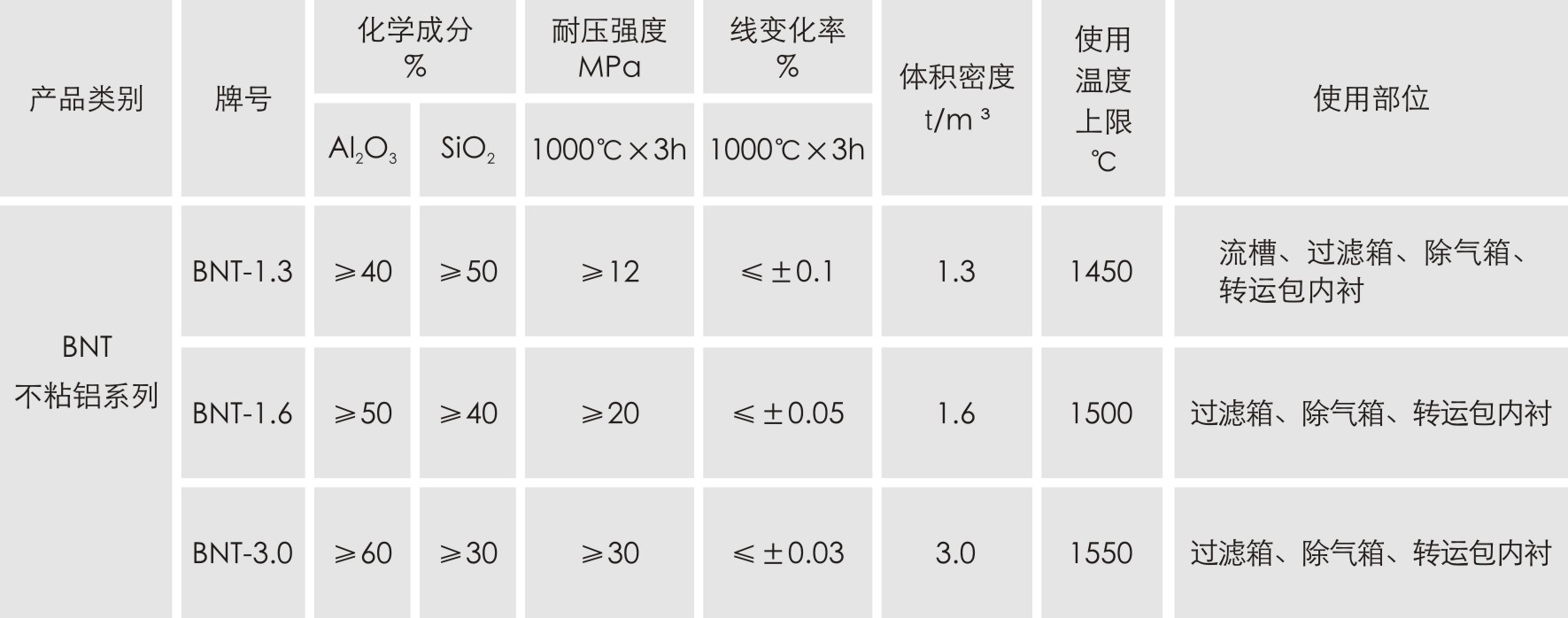 主要特性:不粘鋁,不污染鋁液;